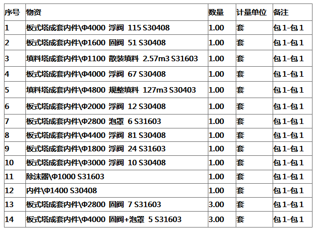 6.其他資格要求:1.持有有效的質(zhì)量管理體系認(rèn)證、環(huán)境管理體系認(rèn)證、職業(yè)健康安全管理體系認(rèn)證證書,并在有效期內(nèi),以http://www.cnca.gov.cn/網(wǎng)上查驗(yàn)為準(zhǔn)。 2.投標(biāo)方必須在2014年至今在石油化工、煤化工行業(yè),具有板式塔塔內(nèi)件業(yè)績至少2 套,且至少一套塔徑≥Φ3500mm,需提供對(duì)應(yīng)業(yè)績的合同和技術(shù)協(xié)議及發(fā)票復(fù)印件,復(fù)印件不清晰或不提供復(fù)印件均視為無效業(yè)績。 3.為保證此次技術(shù)的可靠性,本次投標(biāo)方所用的技術(shù)為:上海蘇爾壽工程機(jī)械制造有限公司、北京澤華化學(xué)工程有限公司、北洋國家精餾技術(shù)工程發(fā)展有限公司、天津天大天久科技股份有限公司、華東理工大學(xué)李玉安團(tuán)隊(duì)。以上技術(shù)支持單位若自己參與本次投標(biāo),不得再授權(quán)其他投標(biāo)人參與本次投標(biāo)。當(dāng)投標(biāo)人使用以上技術(shù)投標(biāo)時(shí),投標(biāo)人應(yīng)提交技術(shù)提供方針對(duì)本裝置的合作協(xié)議或委托書,技術(shù)支持方不可授權(quán)兩家及以上投標(biāo)人參與本次投標(biāo)。 。