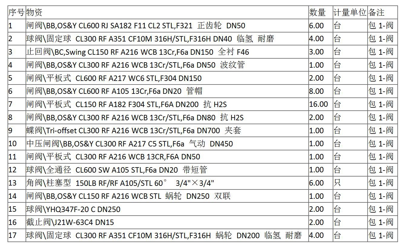 2.項目內容:塔河煉化DXLWP2021063001-46大類閥門(2022大修工單)計劃2022年大檢修項目閥61臺