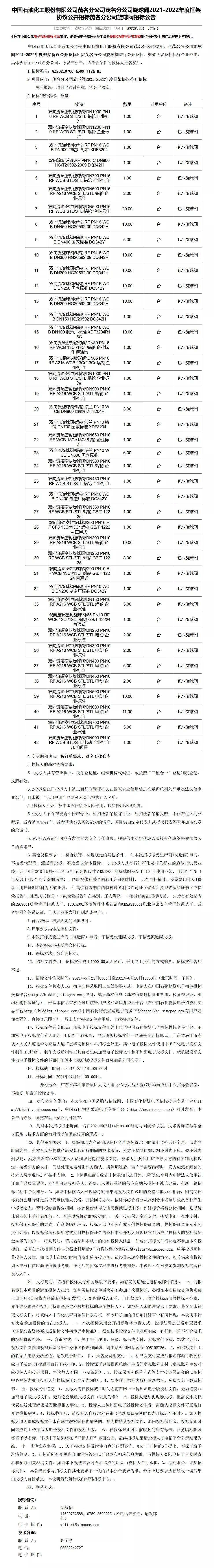中國(guó)石化茂名分公司旋球閥2021-2022年度框架協(xié)議公開(kāi)招標(biāo)茂名分公司旋球閥招標(biāo)公告