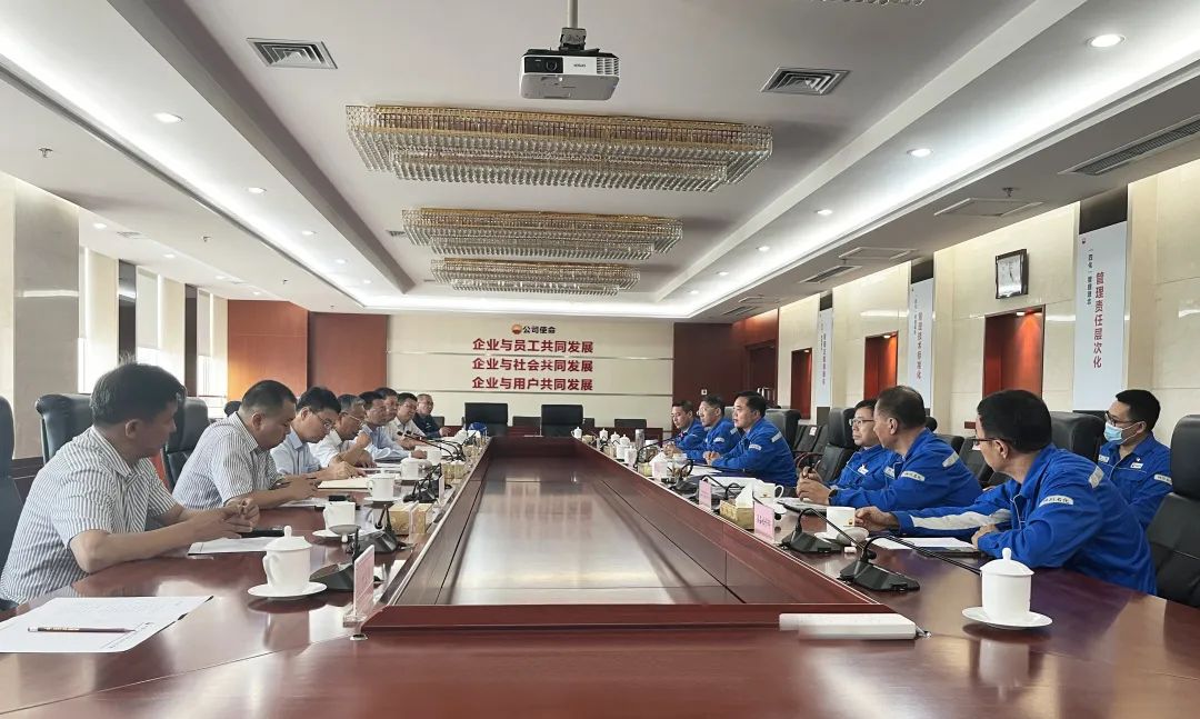 四川石化董事長劉國海、總經理安宏利、副總經理朱柏青等熱情接待吳朋一行,雙方就加強川儀股份與四川石化的深入合作進行廣泛探討和交流。
