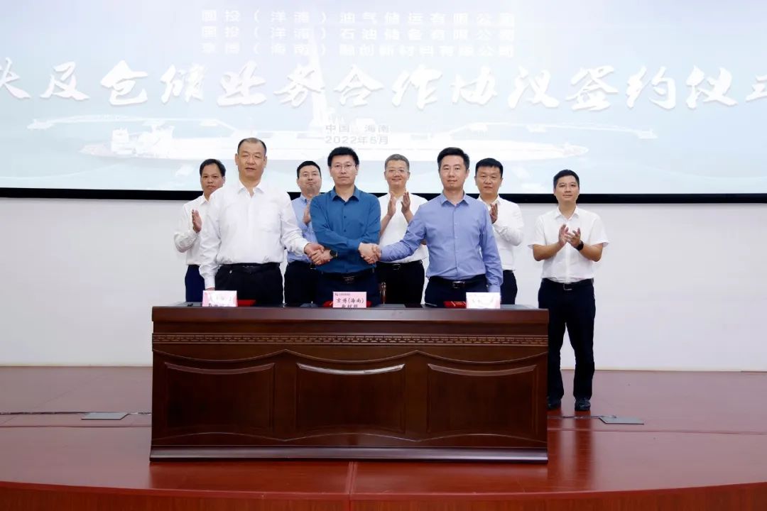 2022年5月26日上午,國投(洋浦)油氣儲運有限公司(以下簡稱“國投洋浦油儲”)、國投(洋浦)石油儲備有限公司(以下簡稱“國投洋浦石油儲備”)與京博(海南)融創新材料有限公司〔以下簡稱“京博(海南)新材料”〕成功簽約碼頭及倉儲業務合作項目。