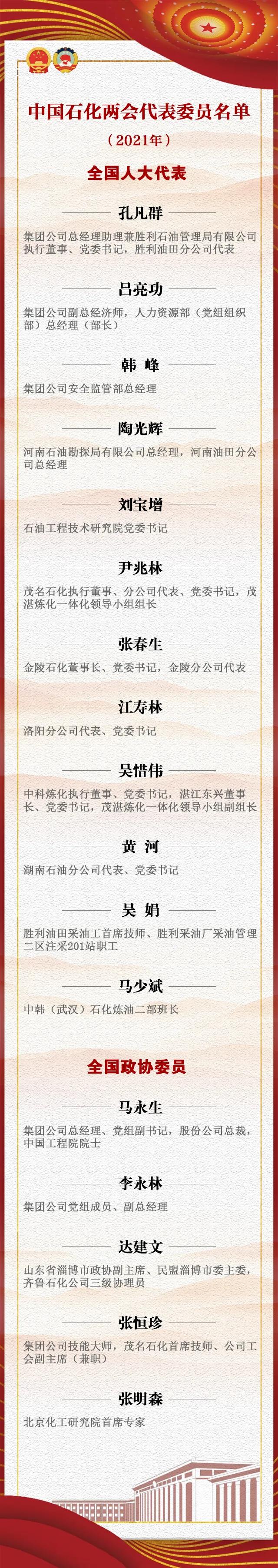 一起來看看,今年來自中國石化的全國人大代表和全國政協委員都有誰↓↓↓