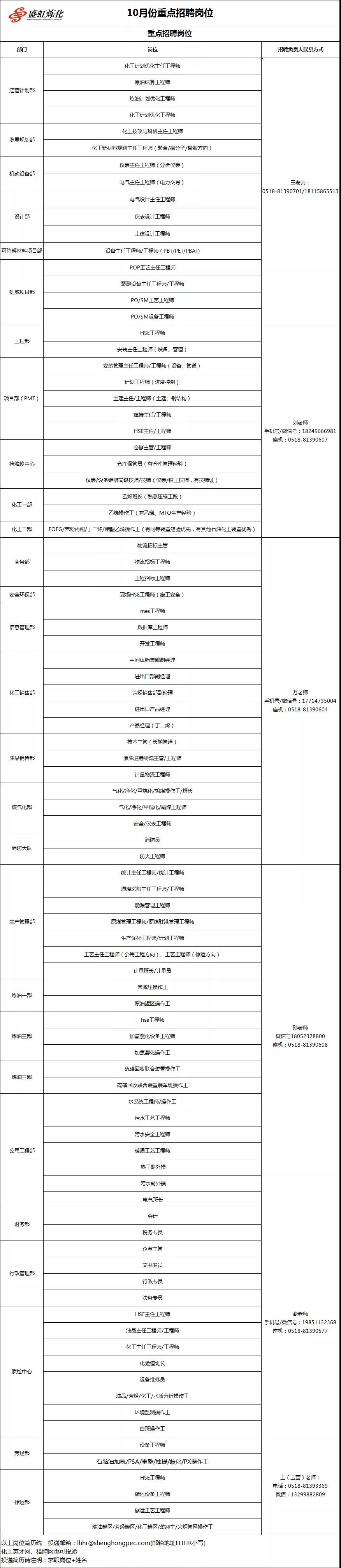 1、盛虹石化招聘