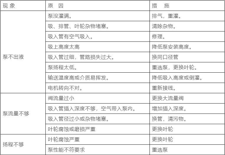 泵常見故障、原因及解決措施