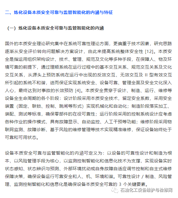 (二)我國煉化設備本質安全可靠與監管智能化對策與建議