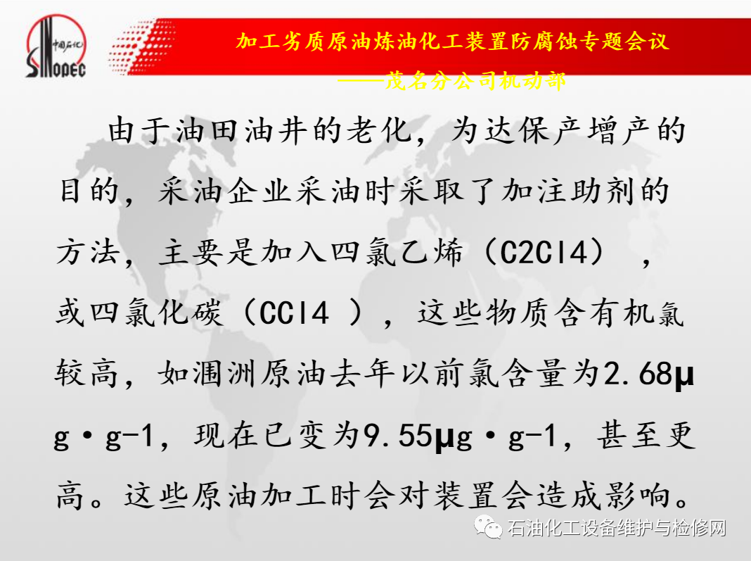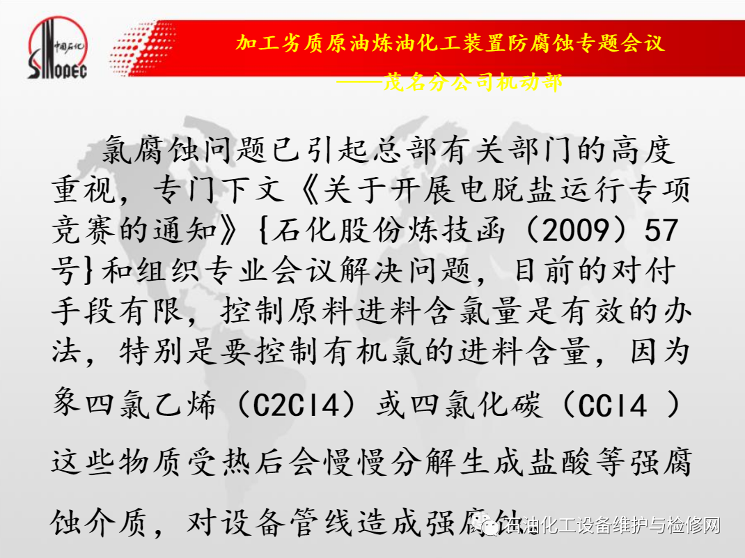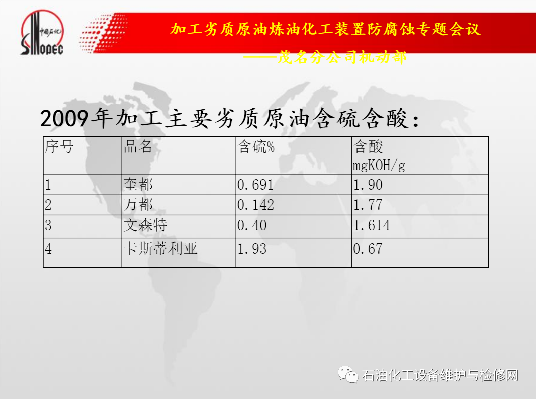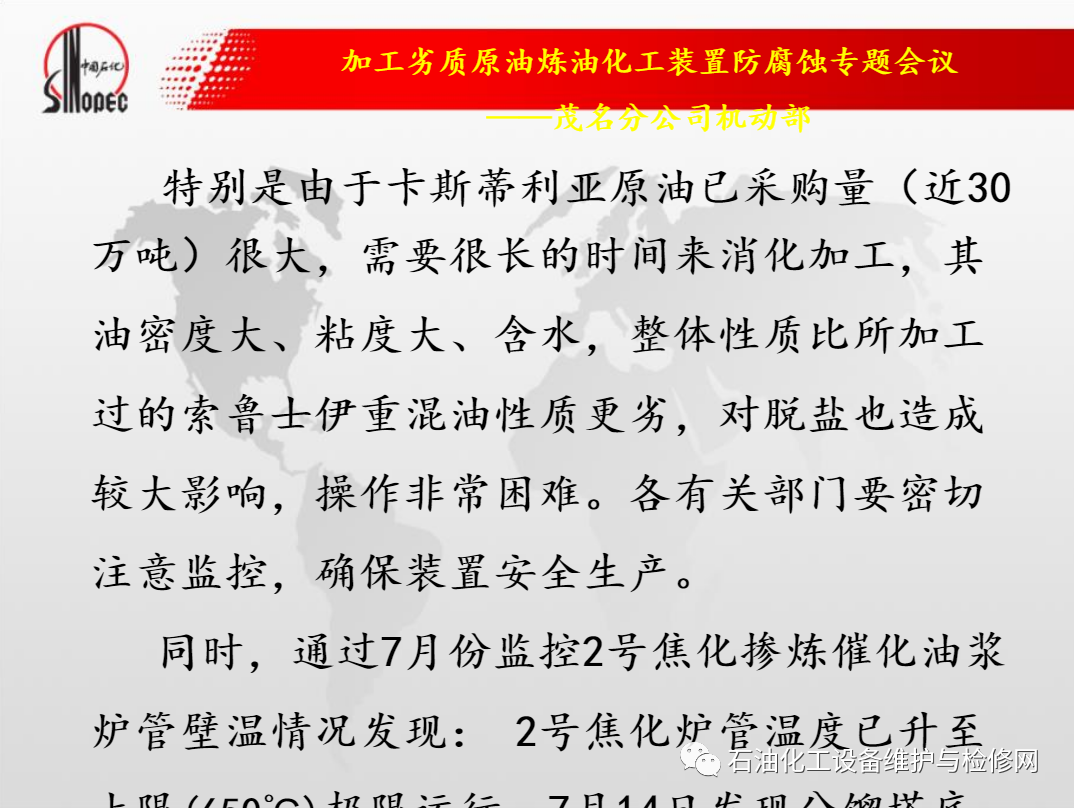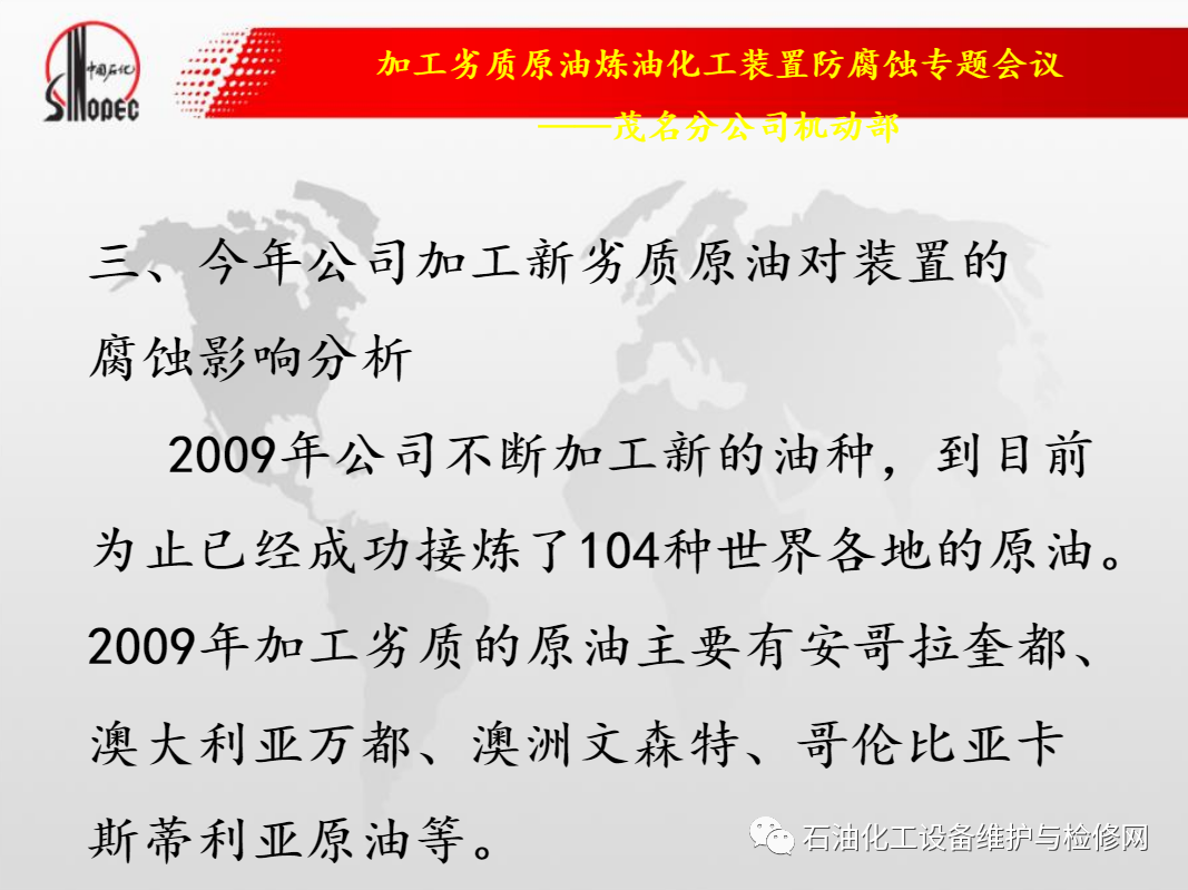 中石化茂名石化加工劣質原油煉油化工裝置防腐蝕.ppt