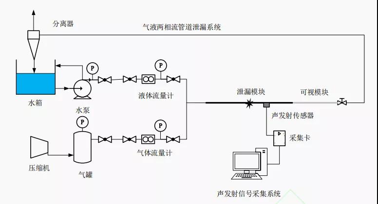 氣液兩相流管道泄漏聲發(fā)射檢測實(shí)驗(yàn)裝置示意圖