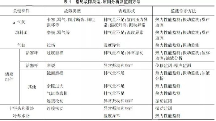 表1 給出了常見故障類型及所采用監測診斷方法,為往復壓縮機故障診斷提供一個參考。