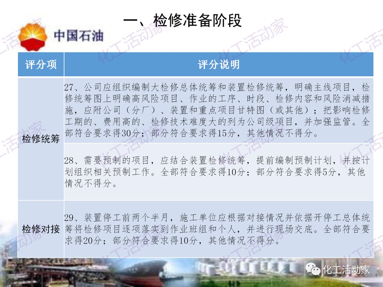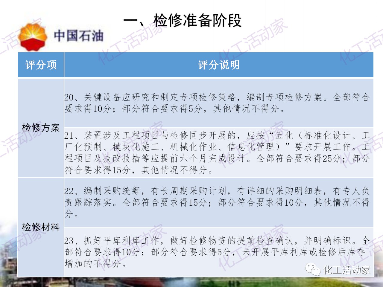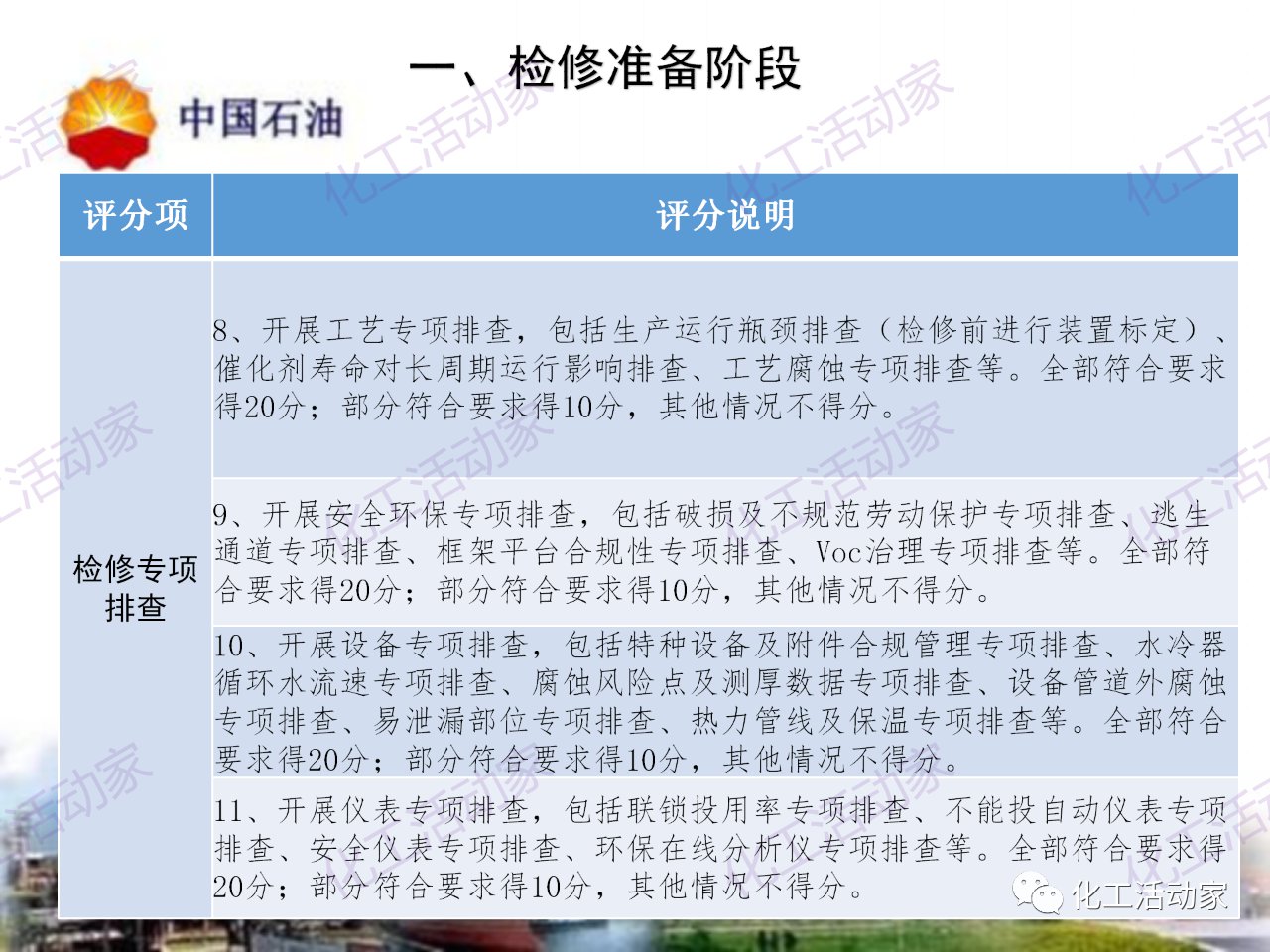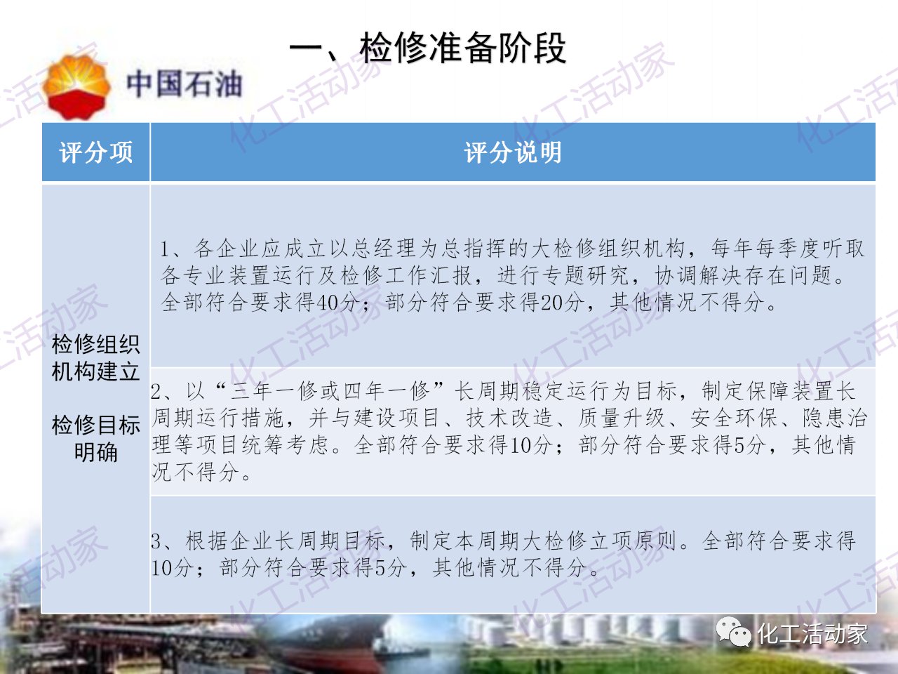 中石油——煉油化工企業全周期大檢修評分標準