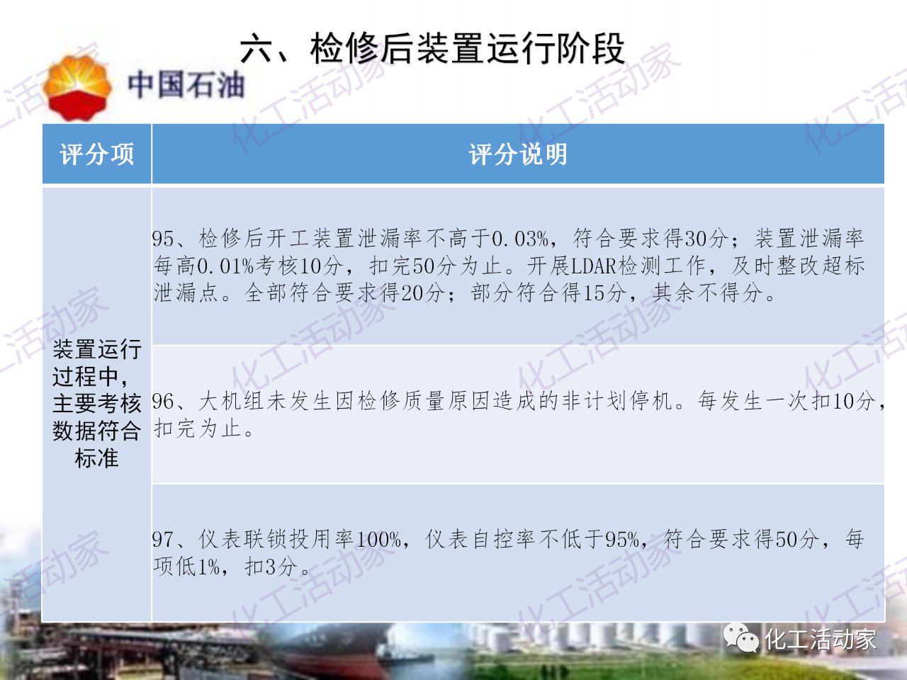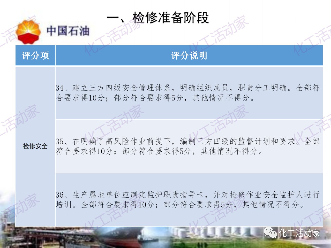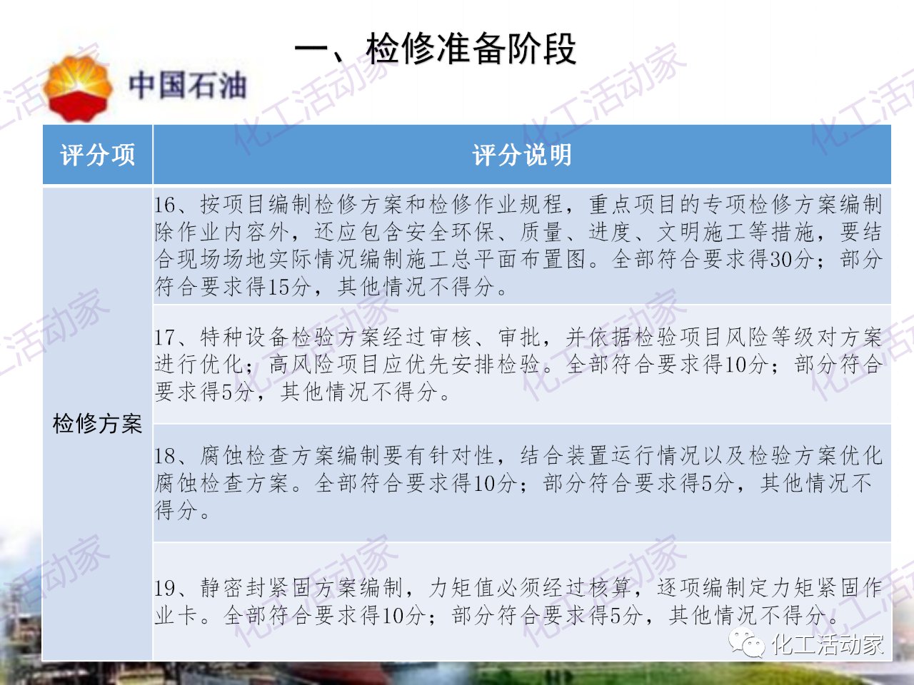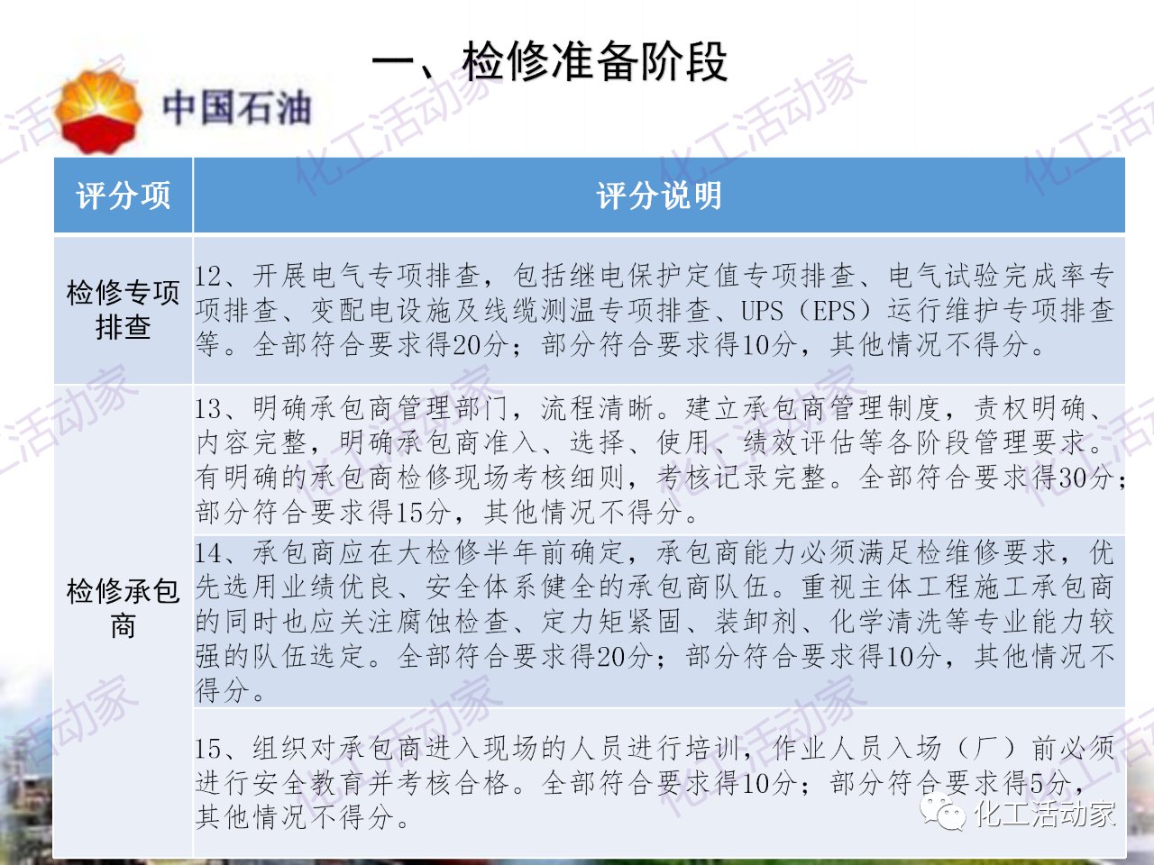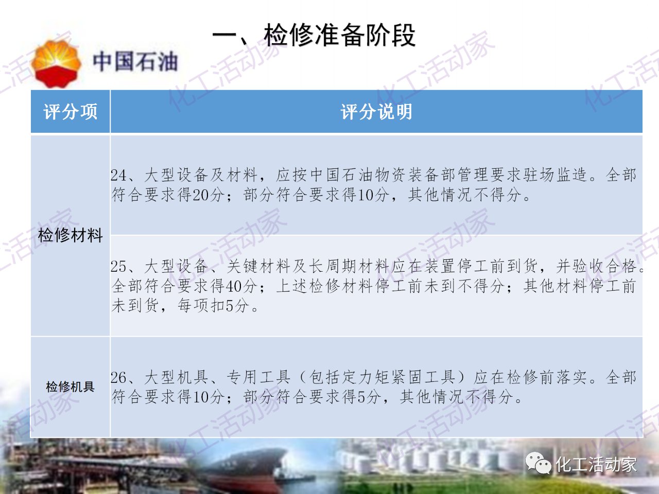 中石油——煉油化工企業全周期大檢修評分標準