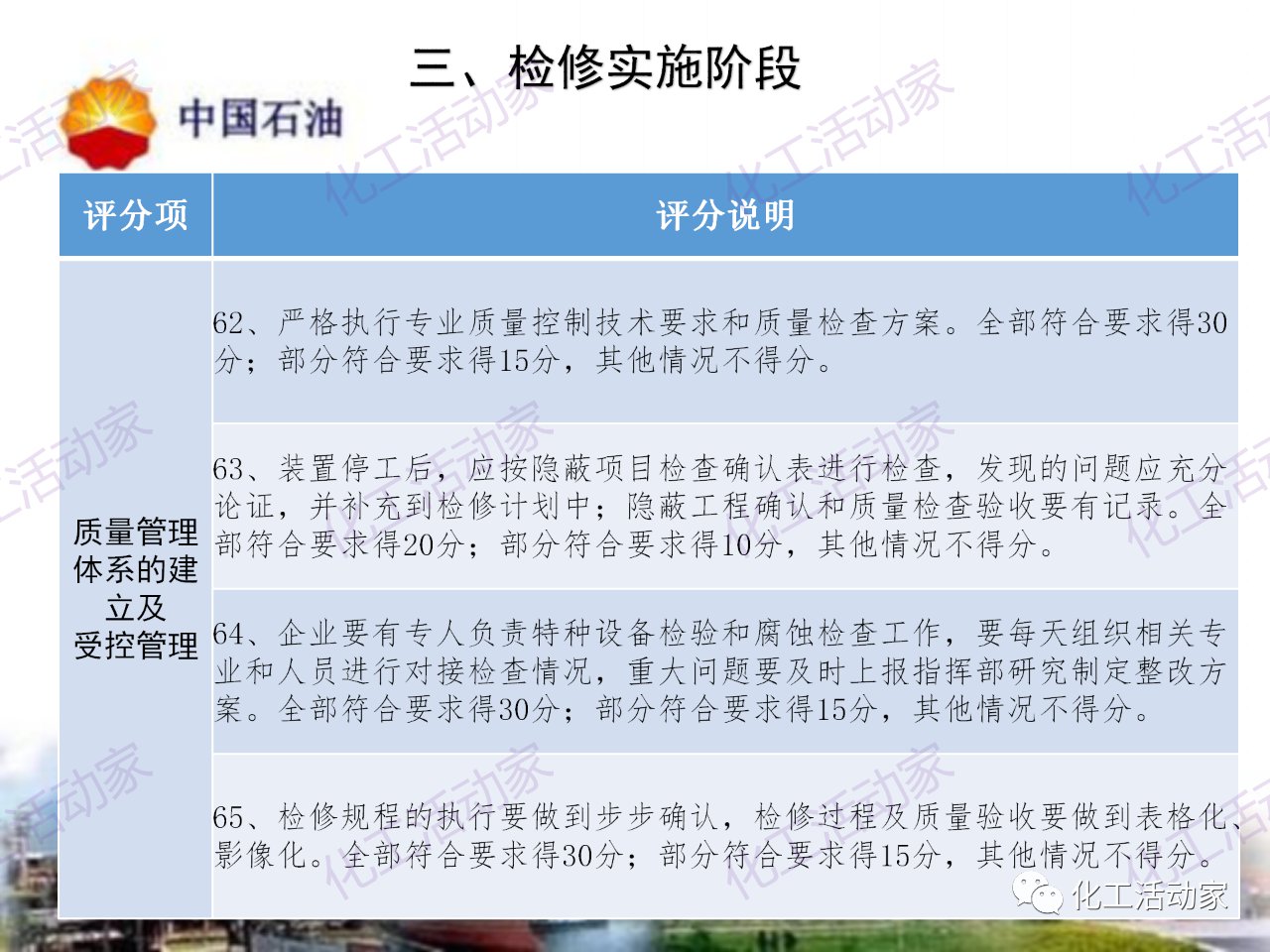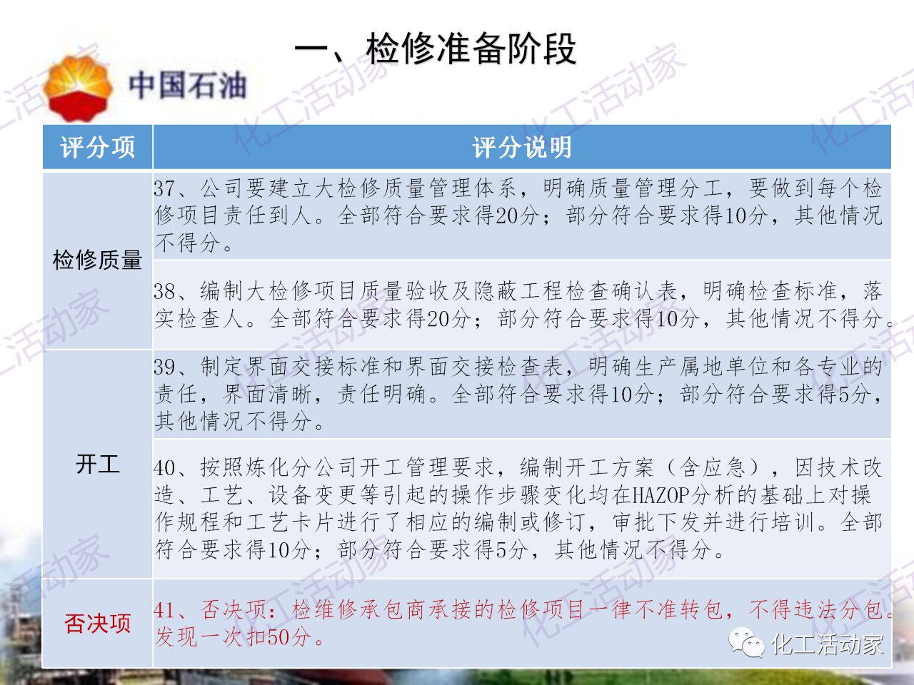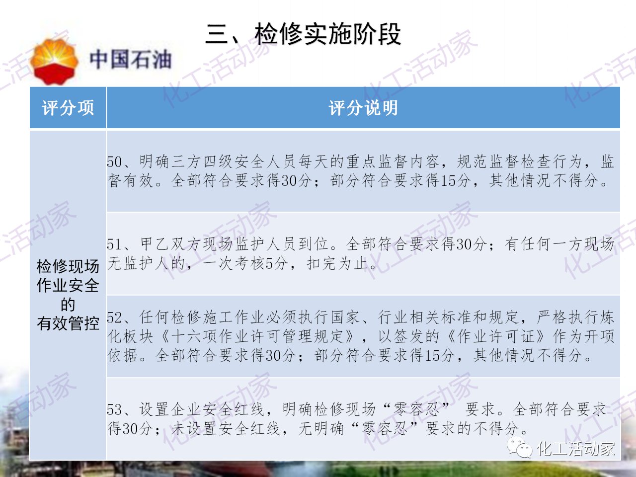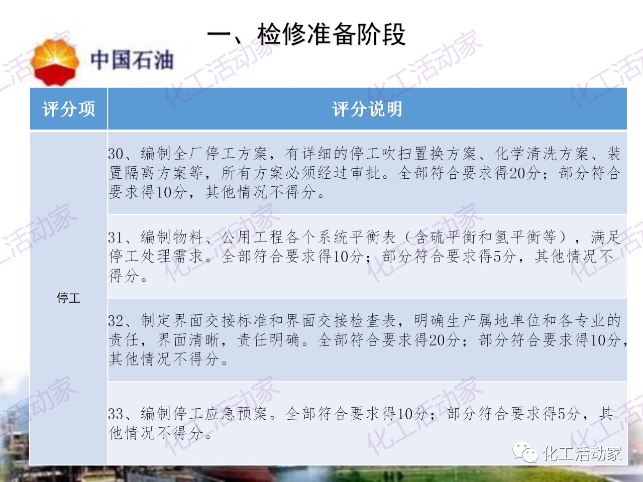 中石油——煉油化工企業全周期大檢修評分標準