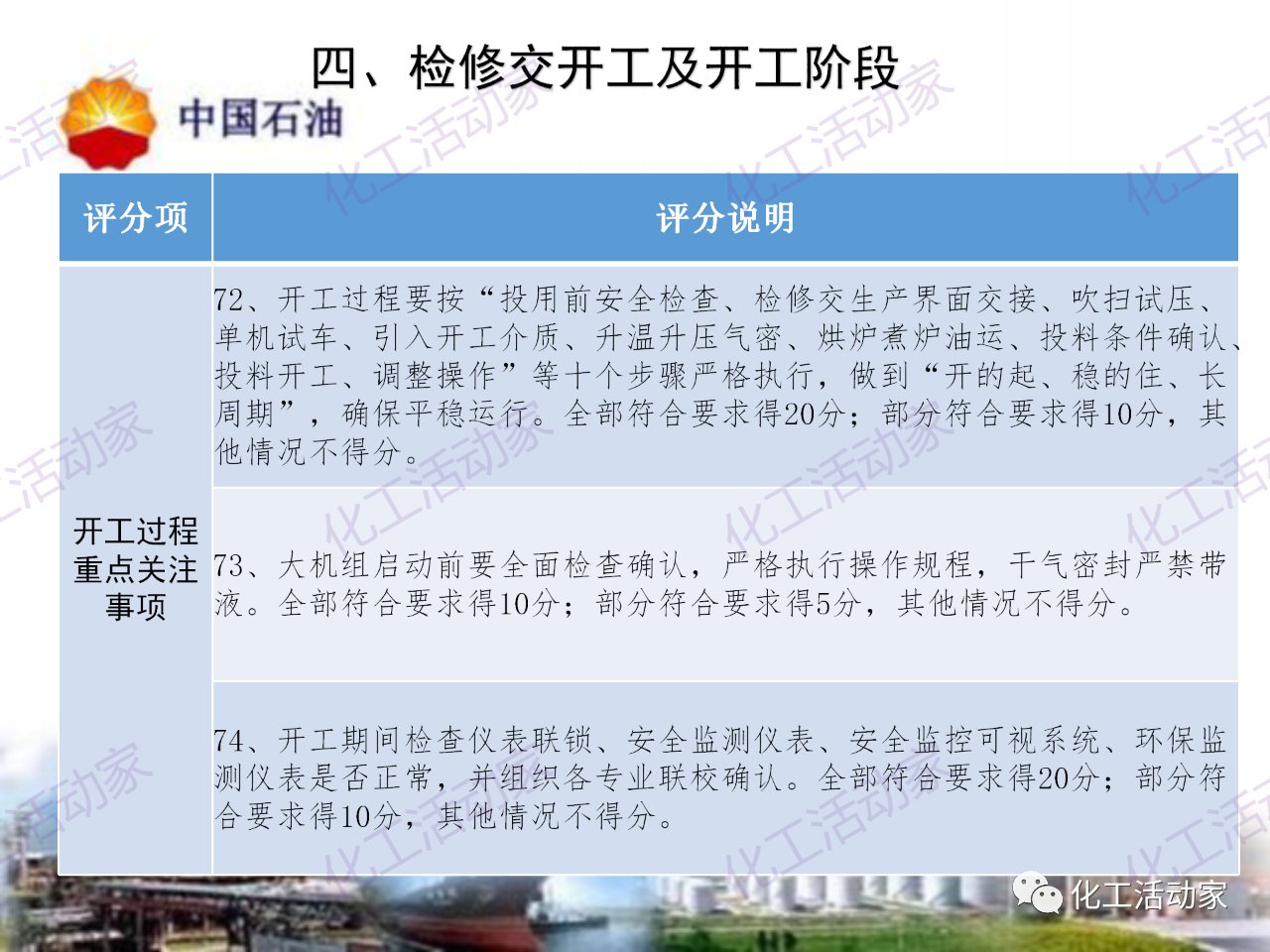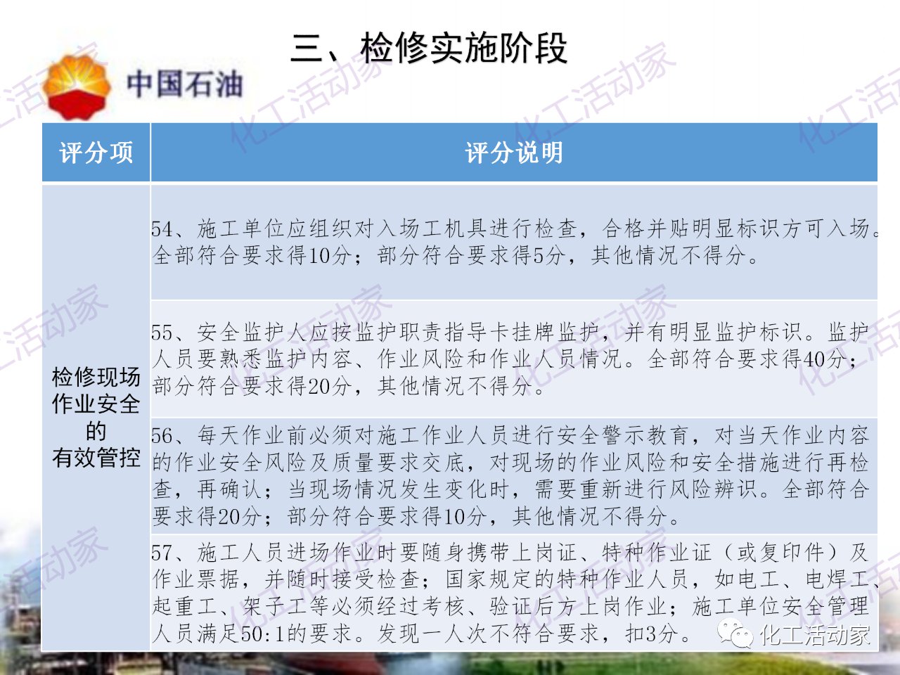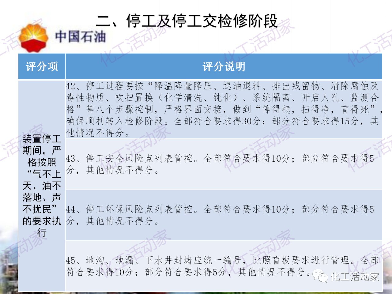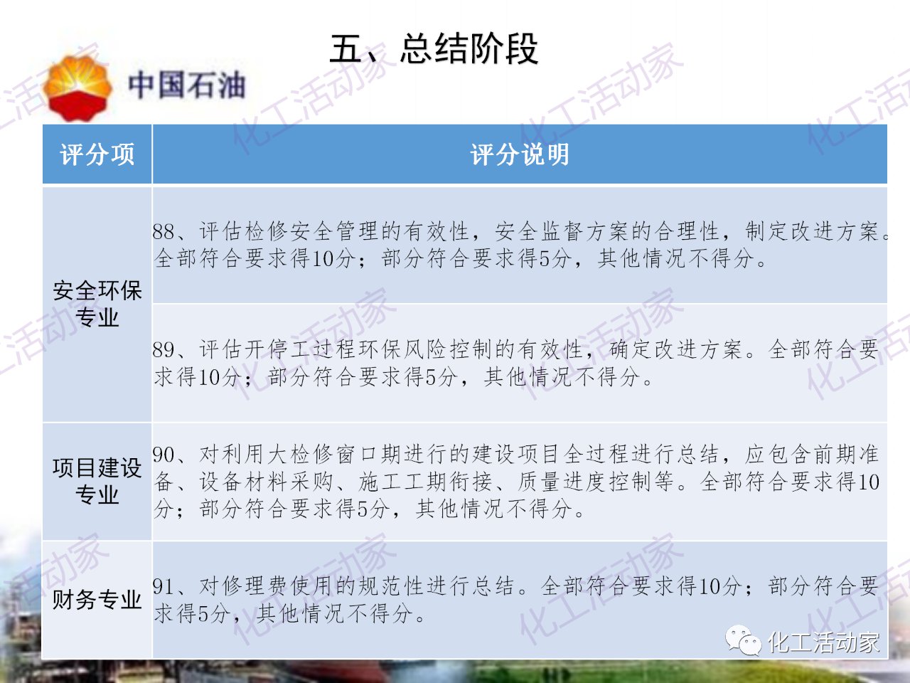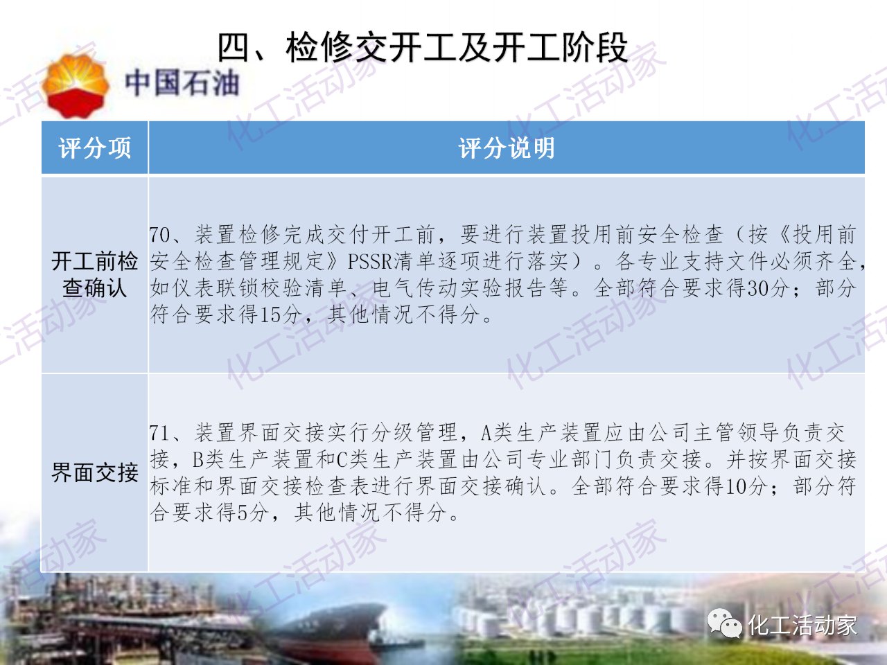 中石油——煉油化工企業全周期大檢修評分標準