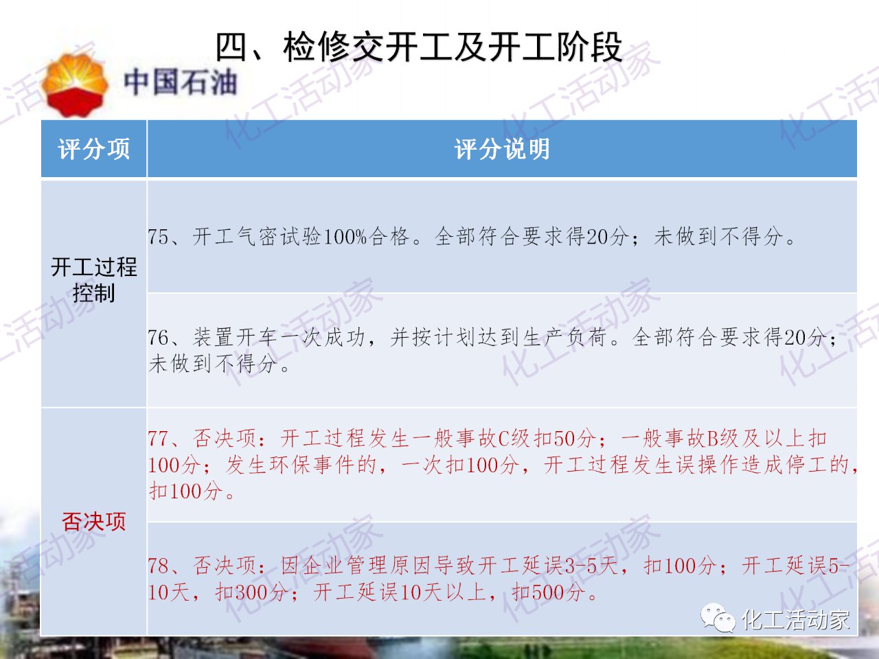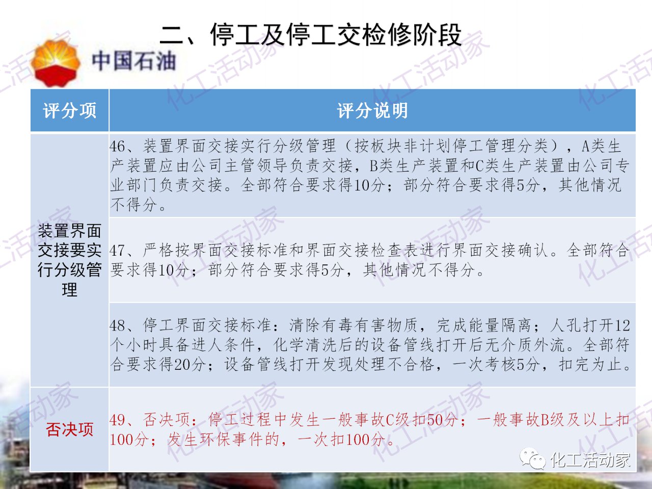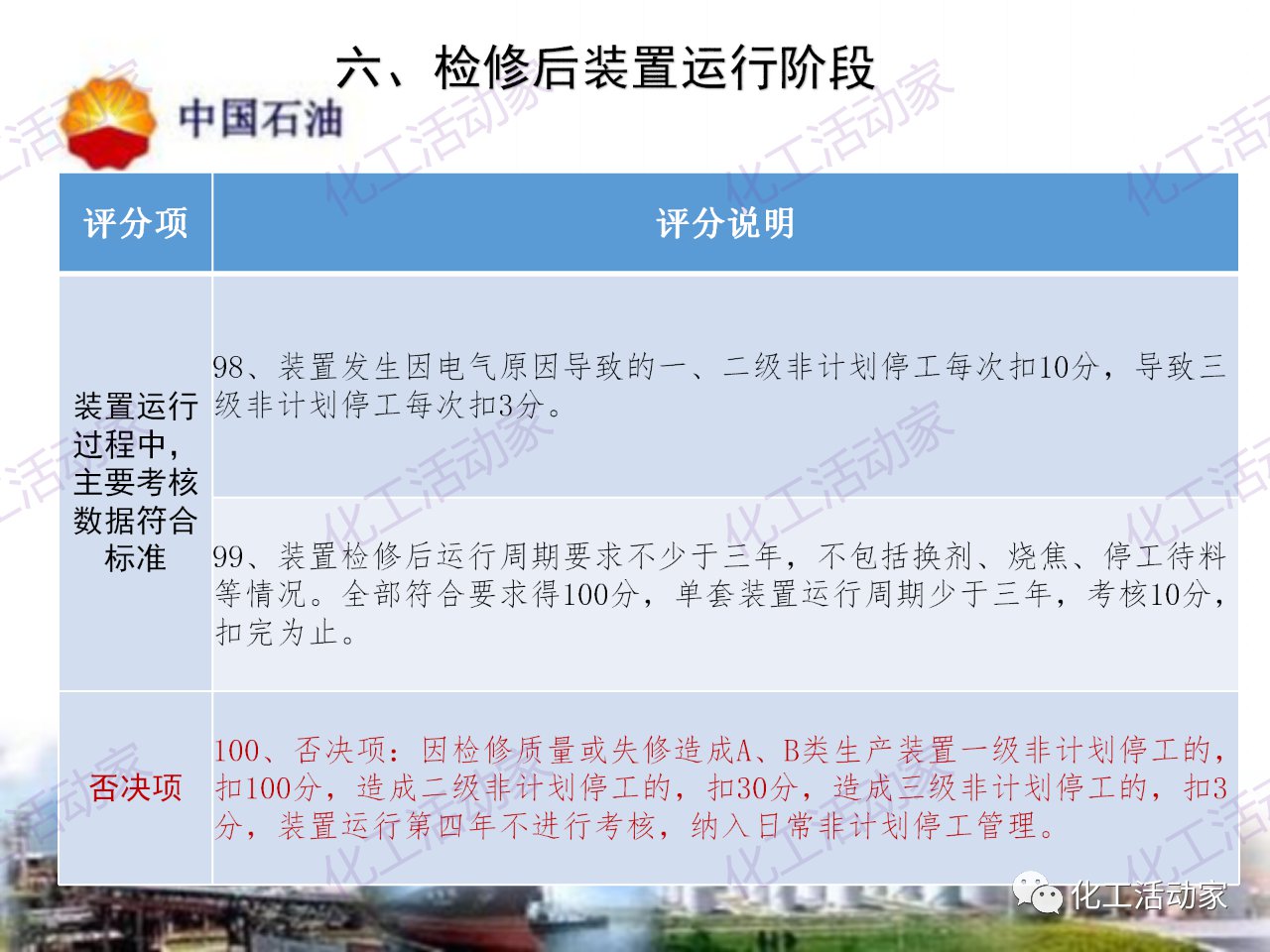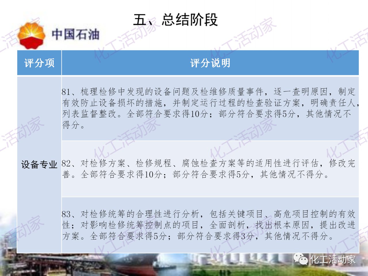 中石油——煉油化工企業全周期大檢修評分標準