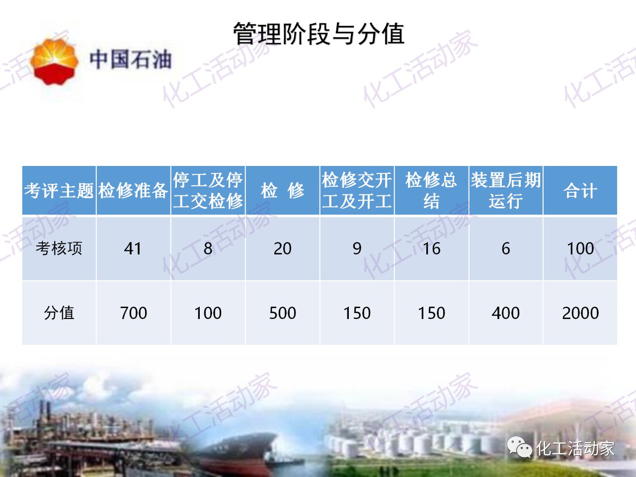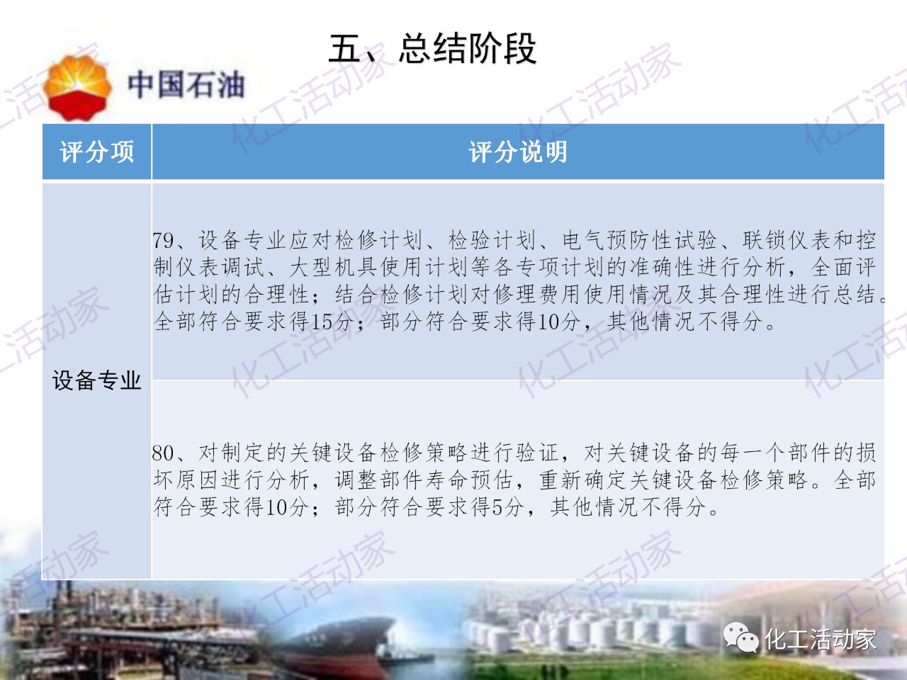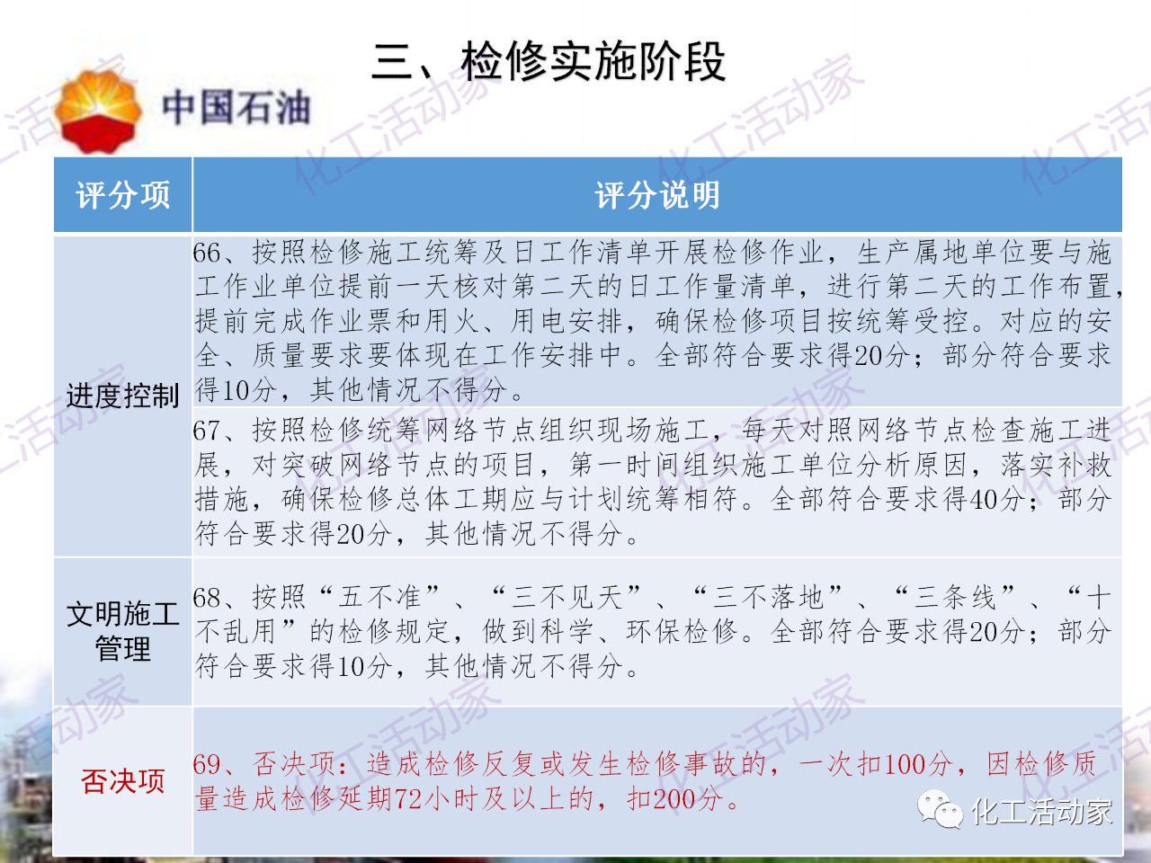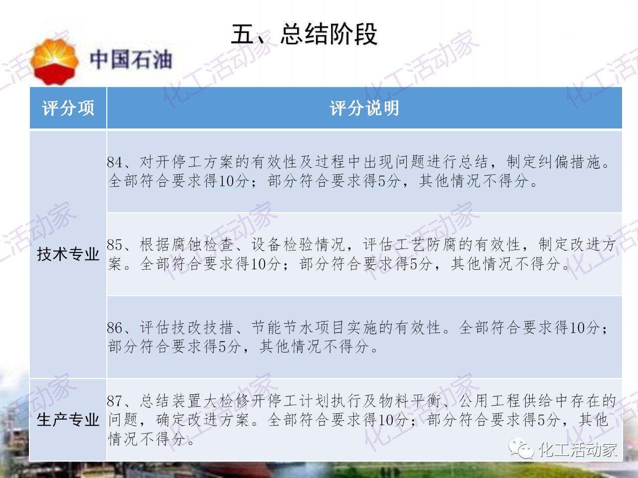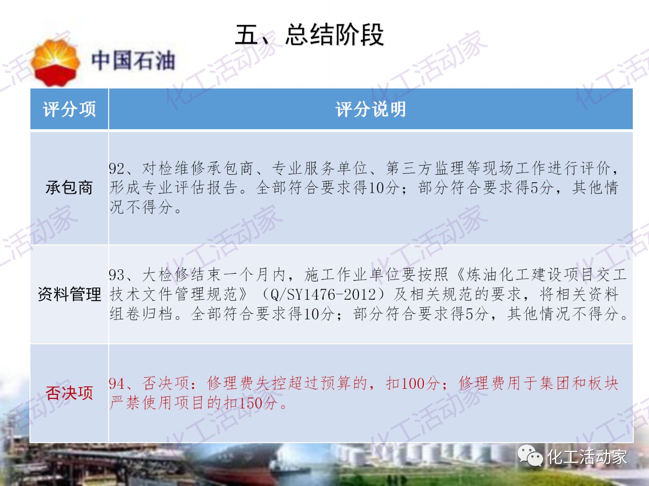 中石油——煉油化工企業全周期大檢修評分標準