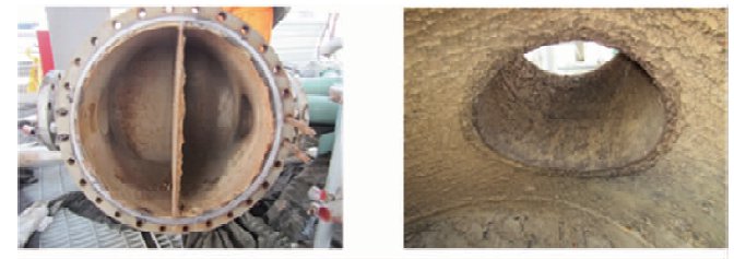 1)循環冷卻水管程流速不宜小于1.0m/s,當循環冷卻水殼程流速小于0.3m/s時,應采取防腐涂層、反向沖洗等措施。循環冷卻水水冷器出口溫度推薦不超過50℃。采用超聲波流量計對水冷器水側進行流速抽查,防止偏流或流速過低。對于結垢傾向嚴重的水冷器,可以加設反沖洗設施或采用超聲波除垢等技術。