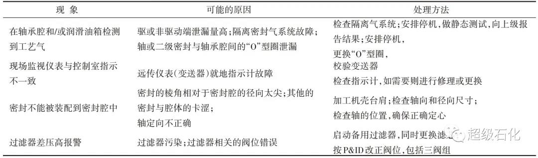 3.1.2 隔離密封氣供氣系統(tǒng) 對供氣出口壓力進行日常巡檢記錄。當隔離密封氣供氣壓力出口處壓力設定值需要進行調整,以保證該出口壓力值高于二級密封出口壓力,用以有足夠的隔離密封氣源在密封結構間隙內符合正常運行條件。需要進行調整時,與廠商聯(lián)系。隔離密封過濾器同樣需要定期檢查,并更換濾芯。
