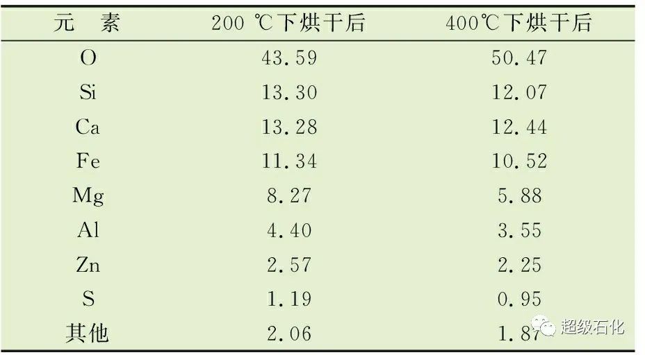 將垢樣在200 ℃和400 ℃下烘干去除水分和揮發(fā)性介質(zhì)后,采用能譜分析(EDS)測(cè)定其主要元素含量,采用X射線衍射(XRD)分析確定其化合物的主要存在形式。