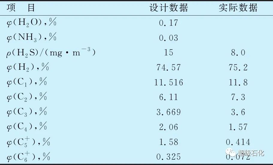 PSA裝置設(shè)計(jì)的原料氣及實(shí)際運(yùn)行過(guò)程中原料氣組成見表1。