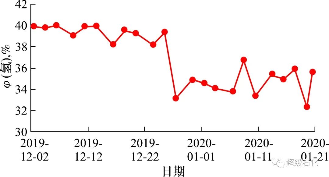 圖2 PSA尾氣氫含量趨勢(shì)